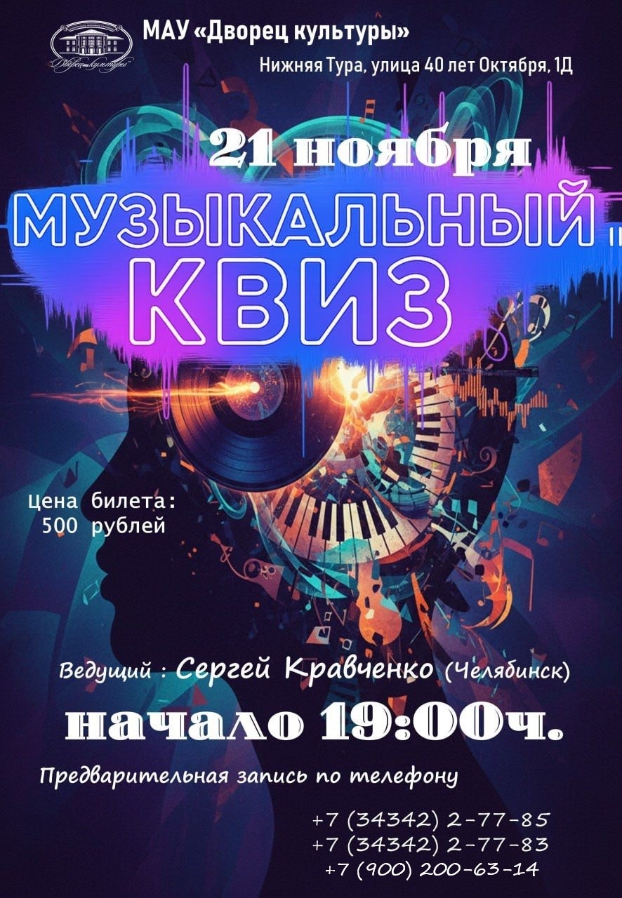 21 ноября во Дворце культуры состоится музыкальный квиз - идеальный повод проверить, кто самый большой знаток музыки!