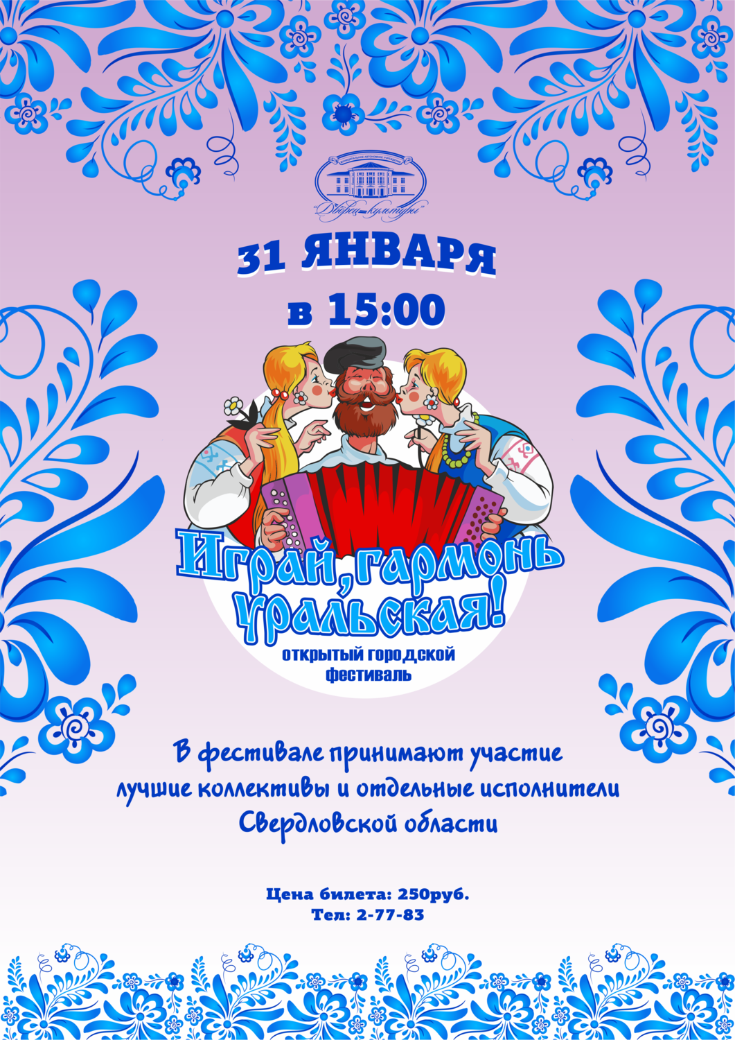 31 января 2026 года во Дворце культуры пройдет ежегодный открытый городской фестиваль «Играй, гармонь уральская!»