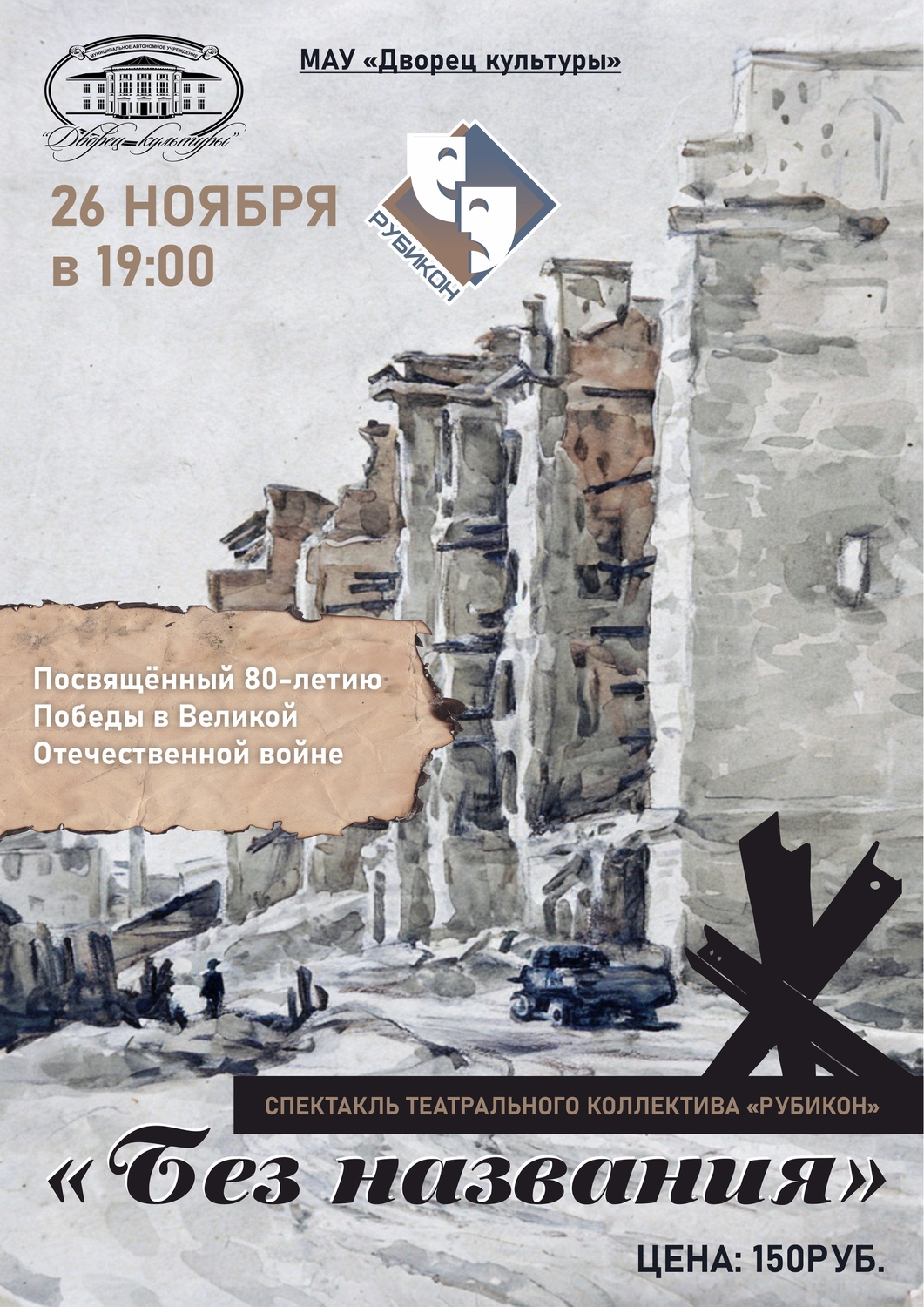 Ждем вас 26 ноября на очень пронзительный спектакль «Без названия» — театрального коллектива «Рубикон»
