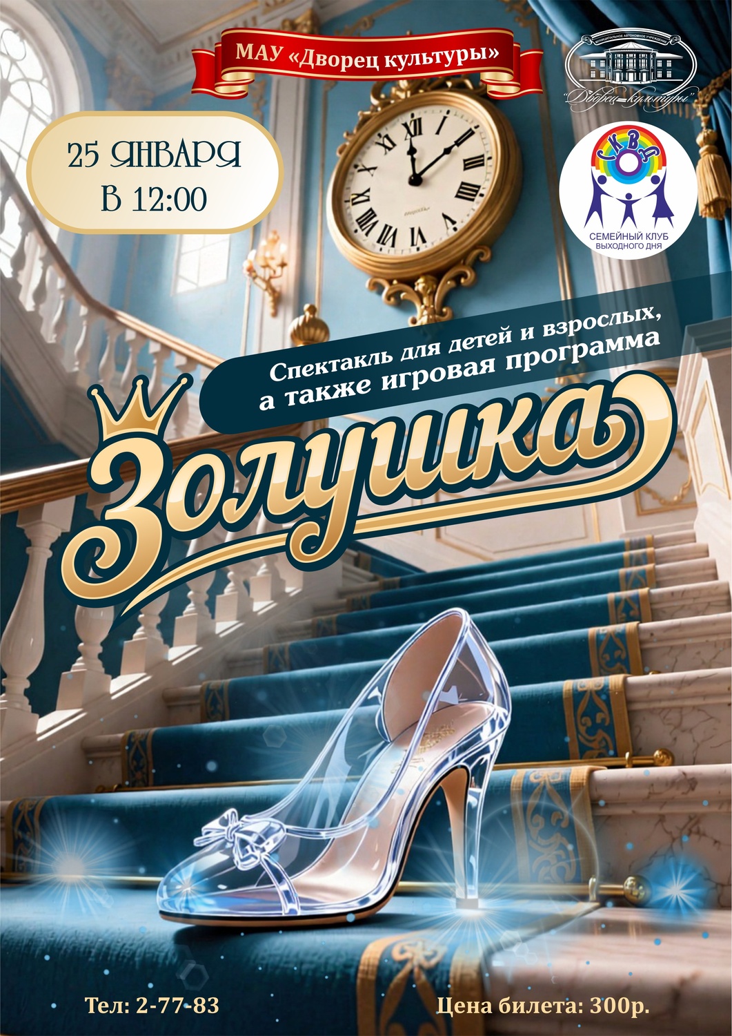 25 января в 12:00 во Дворце культуры вас ждёт спектакль «Золушка» - эта история, знакомая с детства, но каждый раз такая трогательная и прекрасная.