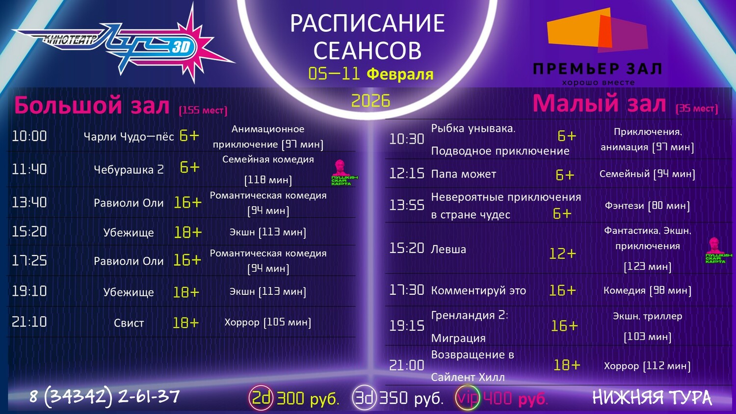 2D - 300 рублей, 3D – 350 рублей, VIP – 400 рублей